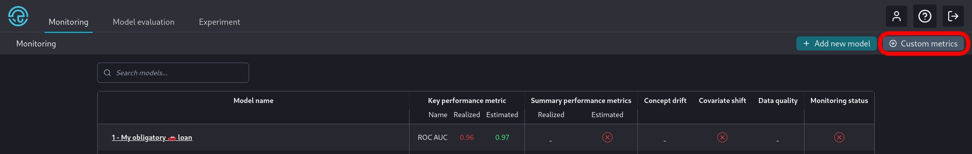 Note that once custom metrics are added they can be selected during the Add new model wizard. You can see the relevant step for binary classification in the screenshot below: