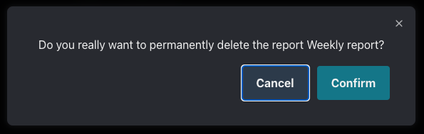 Clicking on Confirm, deletes the report. Clicking on Cancel, cancels the operation the report is still kept.