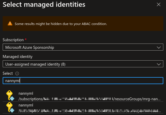 <figure><img src="https://content.gitbook.com/content/vipr4qR9MrP243sDPhAQ/blobs/87J4MzvX8ceRL6pG4QO0/image.png" alt=""><figcaption><p>Searching for the correct managed identity</p></figcaption></figure>