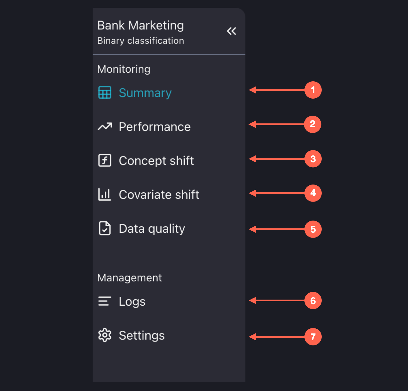 1. Summary Summaries are the most critical insights from the performance, concept shift, covariate shift, and data quality dashboard. Here, you can quickly find out if your model is still performing as expected or if it requires attention.