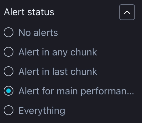 Select which drift measures to display depending on whether there are alerts in the last chunk, alerts in the previous chunks, or no alerts at all, or include all charts regardless of when and if any alerts occurred.