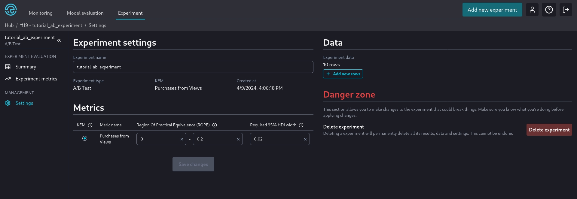 At this screen, we can also review the settings we chose during the experiment creation wizard and make any necessary changes.