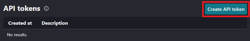 After clicking the create button you'll be presented with a prompt to enter an optional description for the API token. We recommend describing what you intend to use the token for so you know which token to revoke later when you no longer need it. Copy the token from the prompt and store it in a secure location.