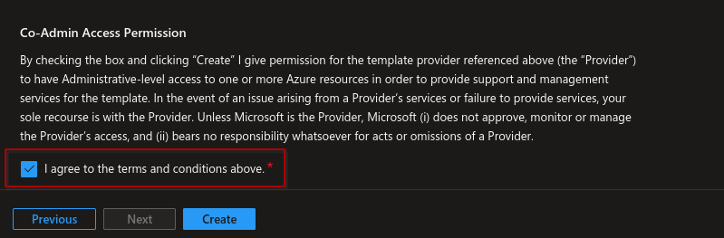 You'll be asked to agree to the publisher, the NannyML support team, having access to the infrastructure provisioned on your subscription.