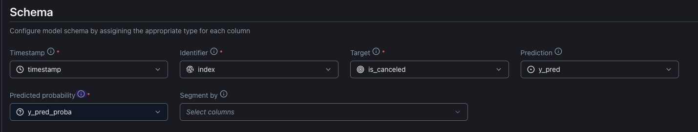 It is possible also to point columns on the dataset schema for non mandatory NannyML data like: