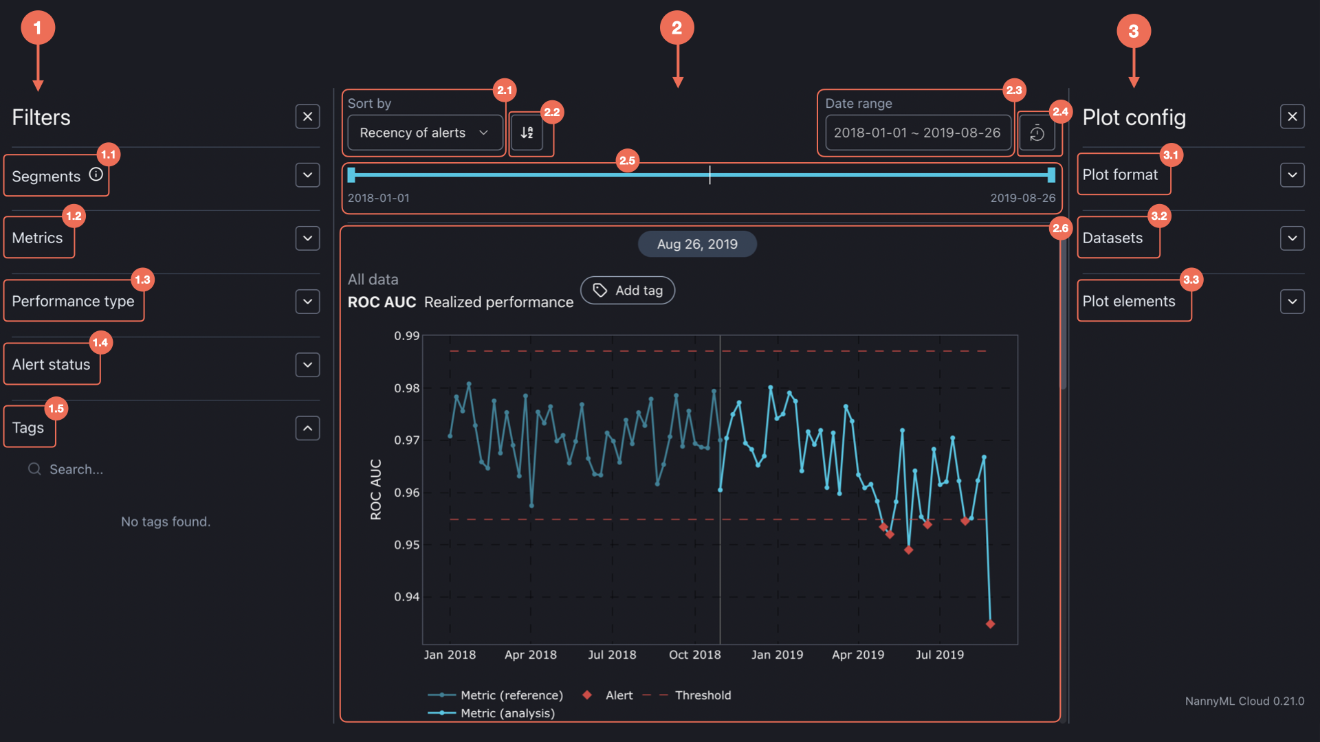 The Performance dashboard allows you to do an in-depth analysis of changes in model performance over time. If you prefer a video walkthrough, here is our guide explaining how to use the performance dashboard page: