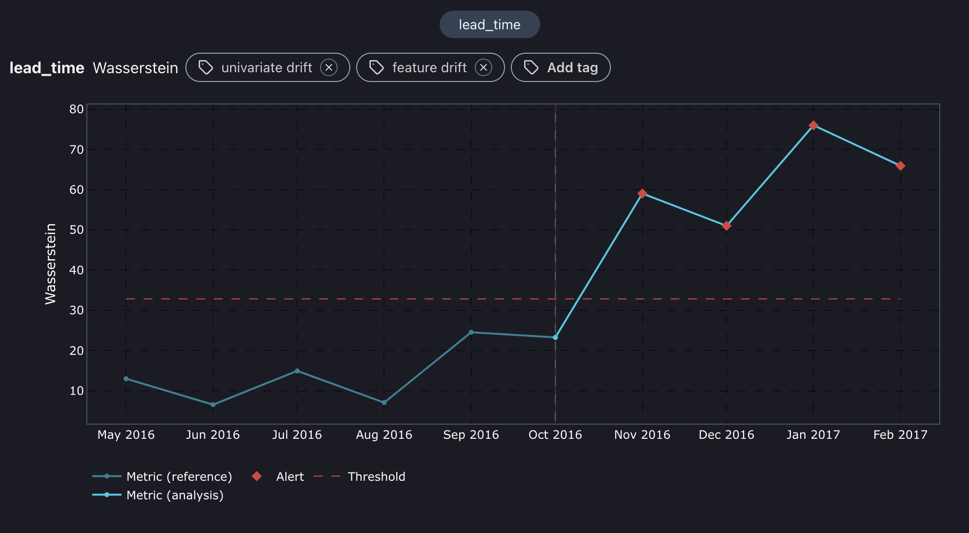 <figure><img src="https://content.gitbook.com/content/wGuco8g4RjyWR8L8lmN8/blobs/YSXtkfCB6mwXTgRcA2C9/quickstart_lead_time.png" alt=""><figcaption><p>Wasserstein distance plot for lead_time feature.</p></figcaption></figure>