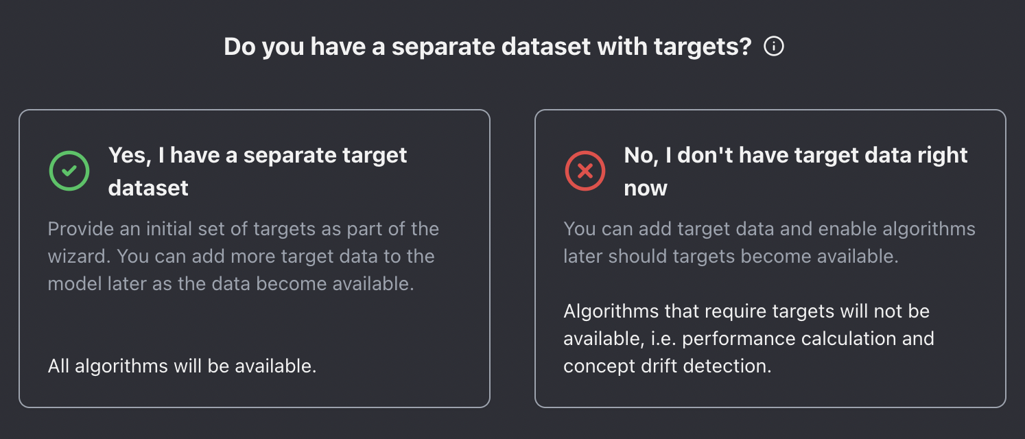 <figure><img src="https://content.gitbook.com/content/wGuco8g4RjyWR8L8lmN8/blobs/vfWYwblUwcEnynGGS0d9/quickstart_add_targets.png" alt="" width="375"><figcaption><p>Datasets section in Model settings.</p></figcaption></figure>