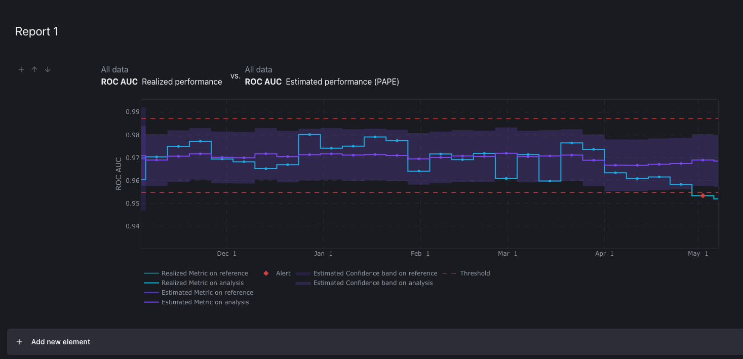 The user, when checking the model's state on the Monitoring page, can add plots to reports directly from the monitoring page.