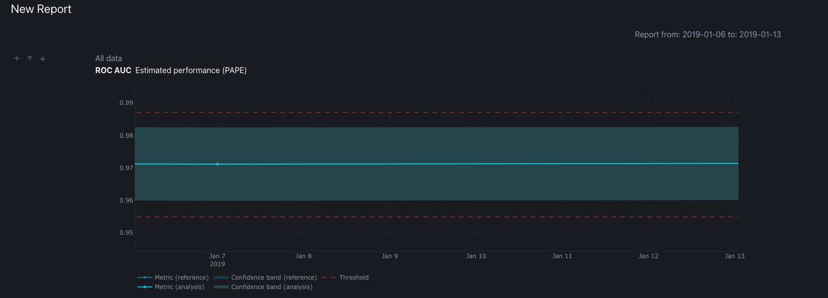 By selecting All data, the user will have, instead of a snapshot in time, the report date range starts on the first data point of the model's dataset and ends on the last data point. In this case every new datasets added to the model will affect the report plots by appending the new data over it.