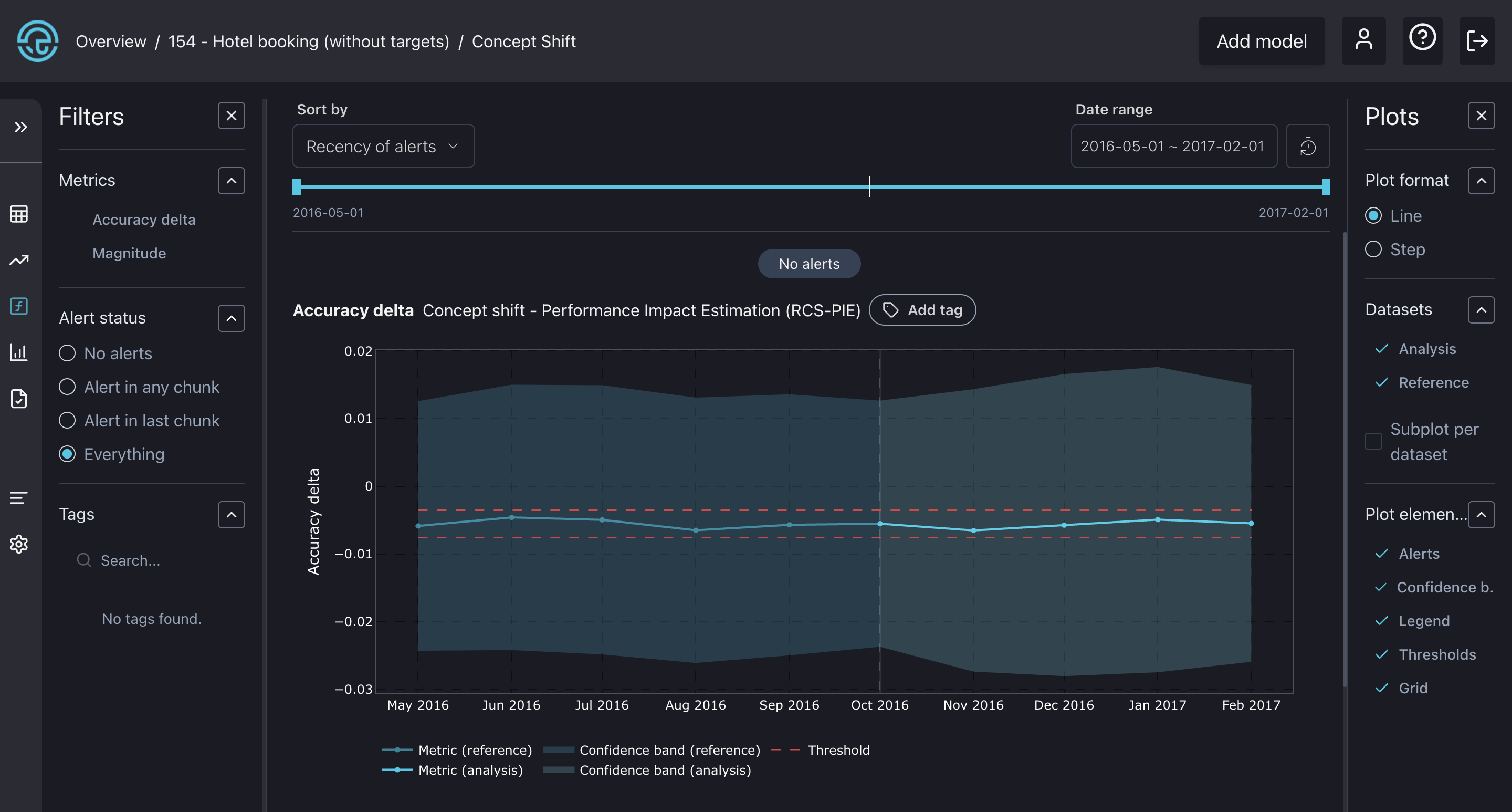 Notice that concept drift detection is not available since it requires ground truth data in the analysis set.