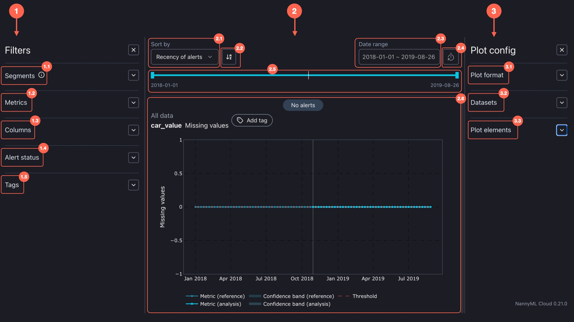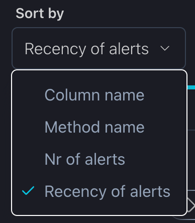 Nr of Alerts: The icon toggles between ascending and descending order based on the number of alerts. The default mode displays plots with the most alerts first.