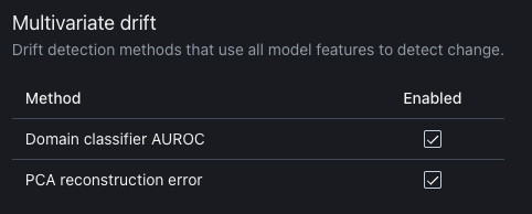 Here, you can specify which covariate shift metrics NannyML Cloud will be analyzing.