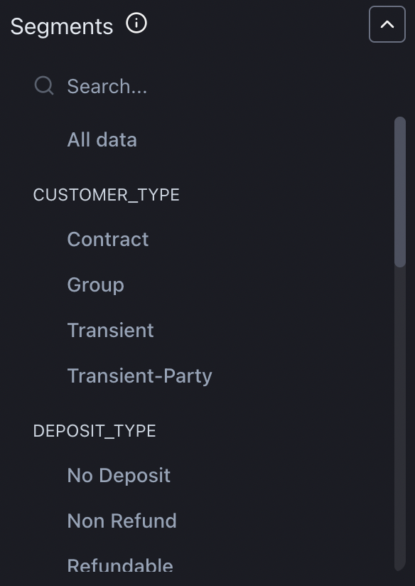 In the filter section, you can select the segments you want to see visualized. You can also select All data to visualize results for the entire dataset.