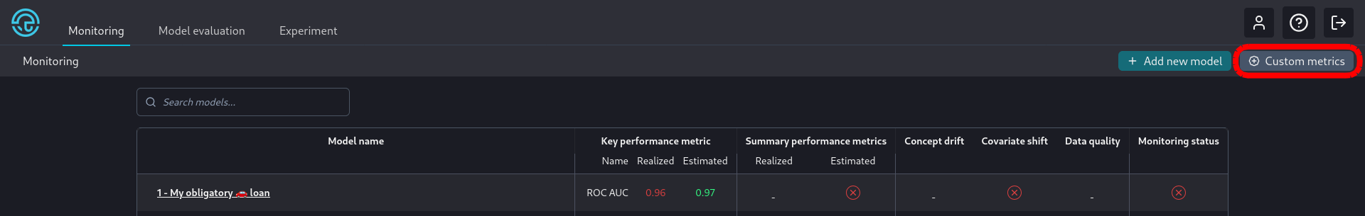 <figure><img src="https://content.gitbook.com/content/XHZtmbIWCoRBaGjIyKin/blobs/3PZ8KZ9XGflbPTLcG3tU/20240826-9.png" alt=""><figcaption><p>Enabling a custom metric during the Add new model wizard.</p></figcaption></figure>