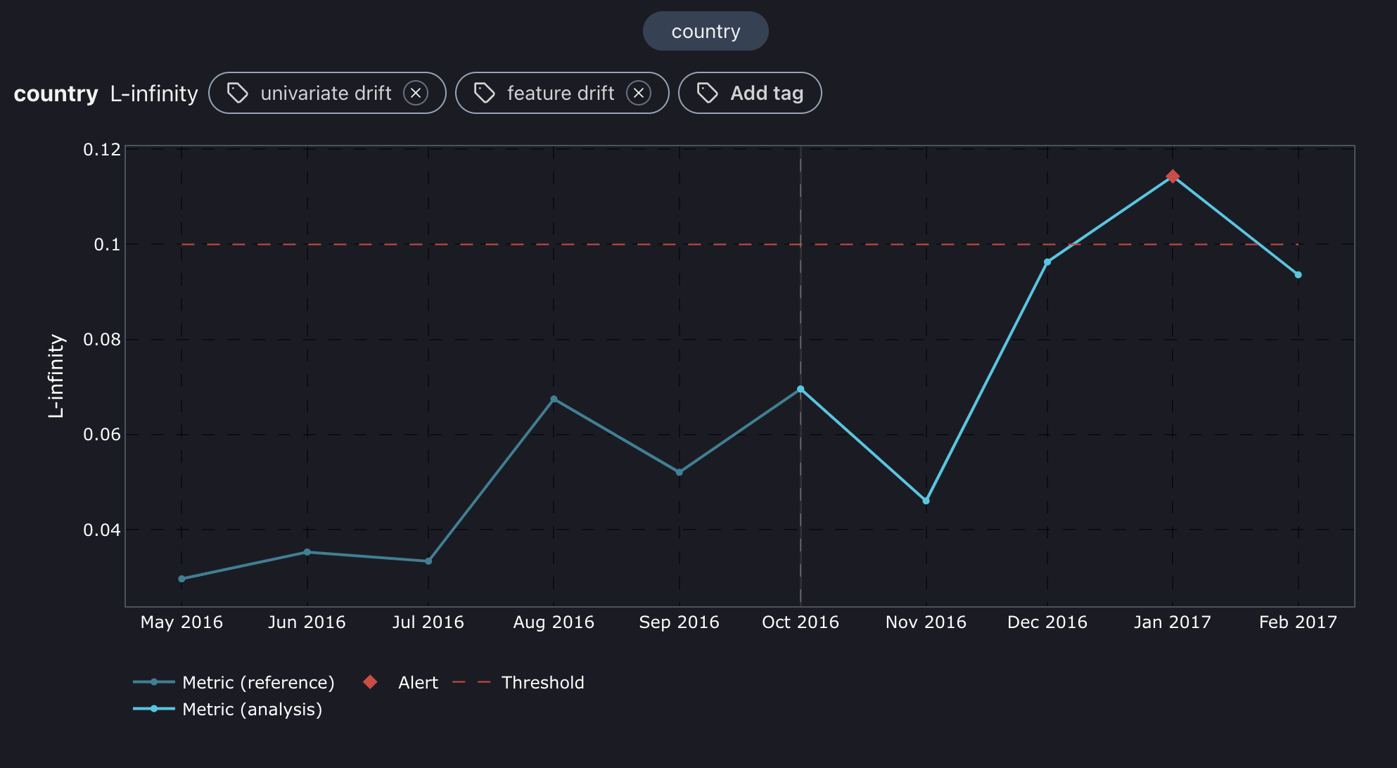 <figure><img src="https://content.gitbook.com/content/XHZtmbIWCoRBaGjIyKin/blobs/qvPay6H0TCTMAdzXslXQ/quickstart_country.png" alt=""><figcaption><p>L-infinity plot for country feature.</p></figcaption></figure>