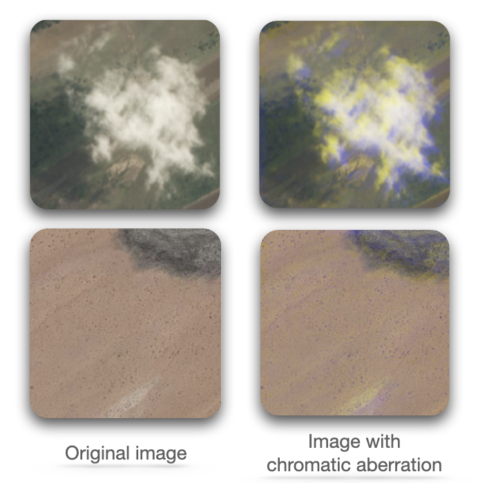 The common problem in cameras is chromatic aberration, where the colors on the images shift, caused by lens failure. As a result, "fringes" of color along boundaries separate dark and bright parts of the image(as you can see in the picture below).