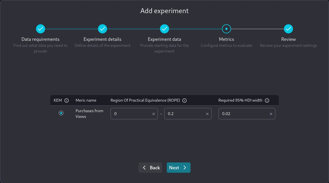 At this screen, we can also review the settings we chose during the experiment creation wizard and make any necessary changes.