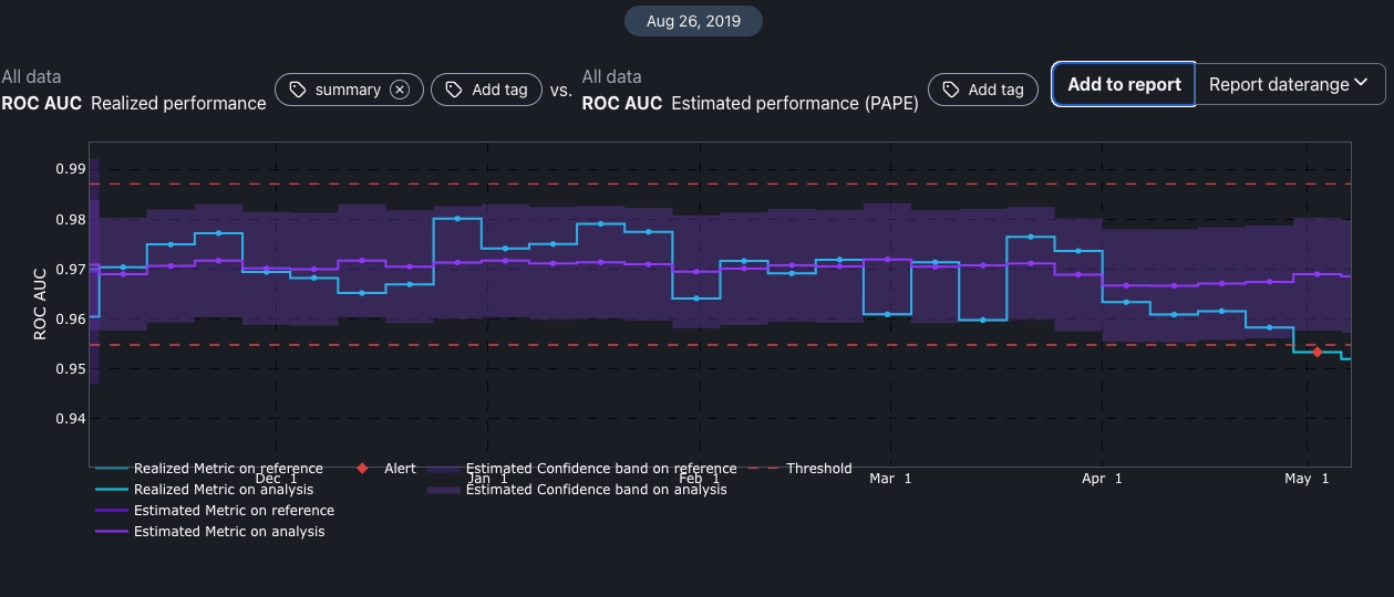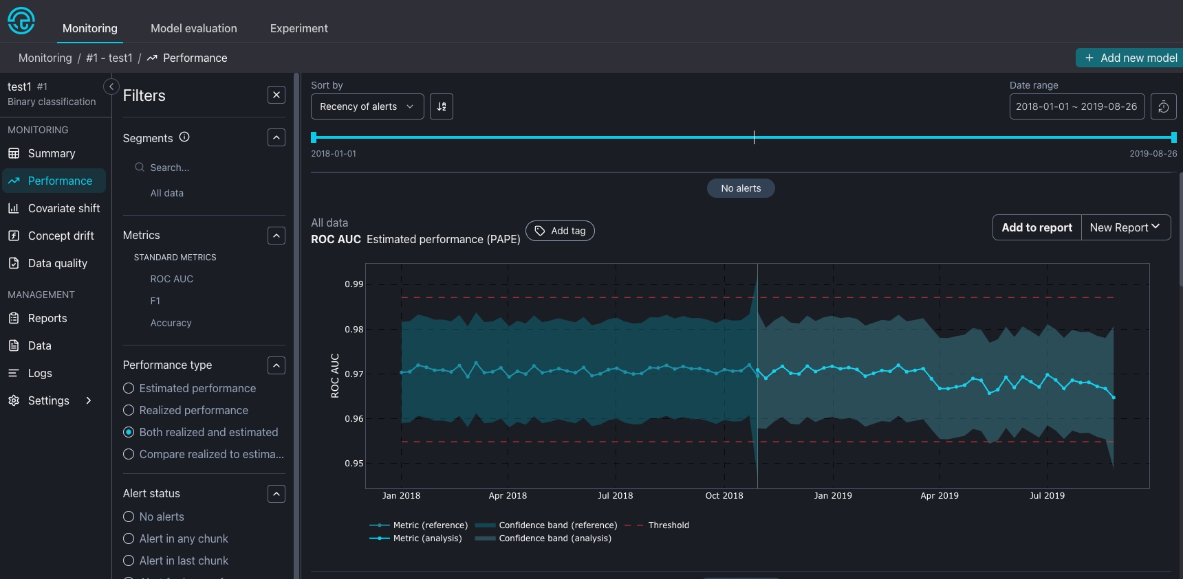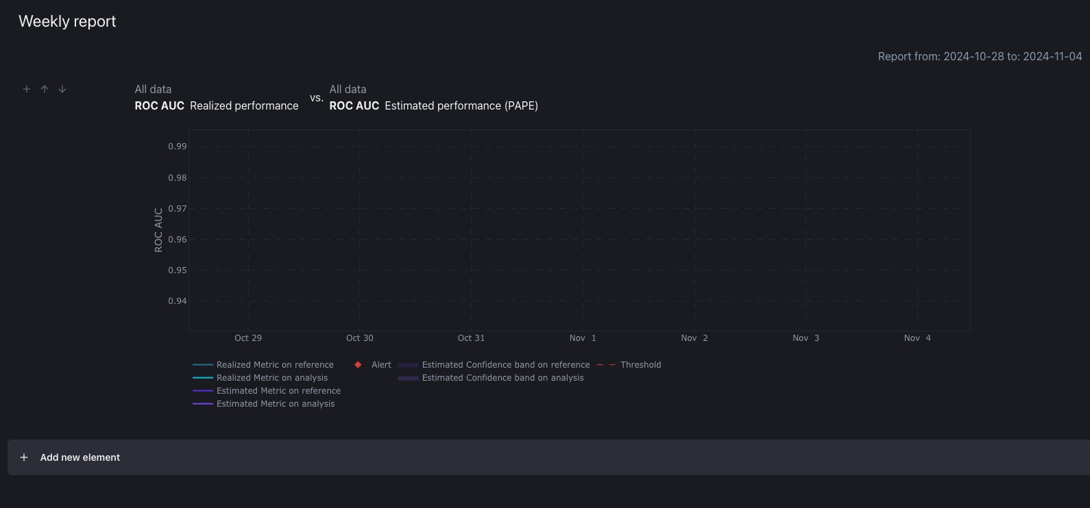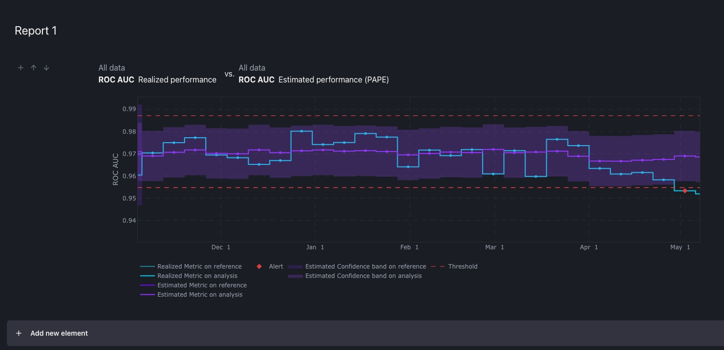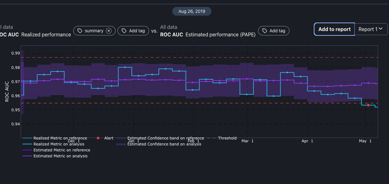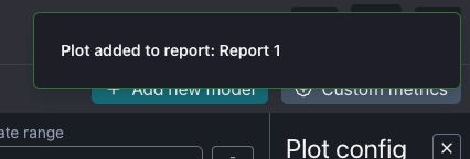 The user, when checking the model's state on the Monitoring page, can add plots to reports directly from the monitoring page.