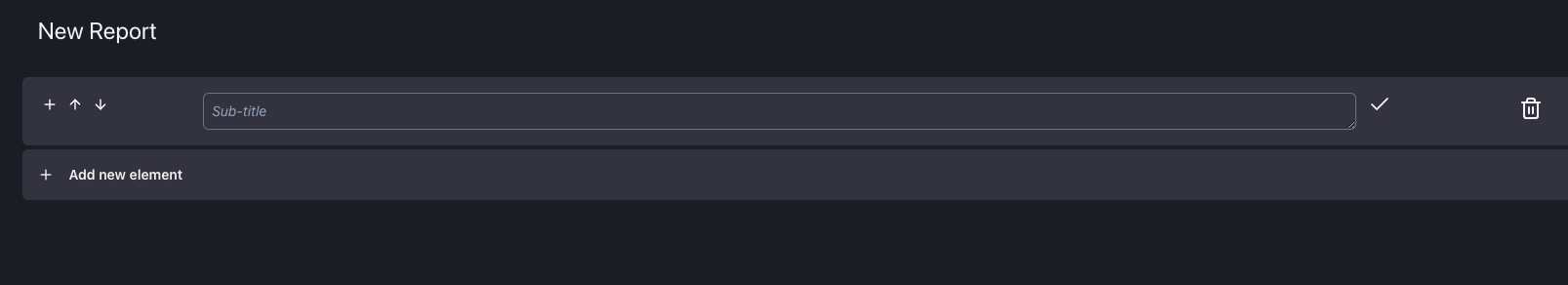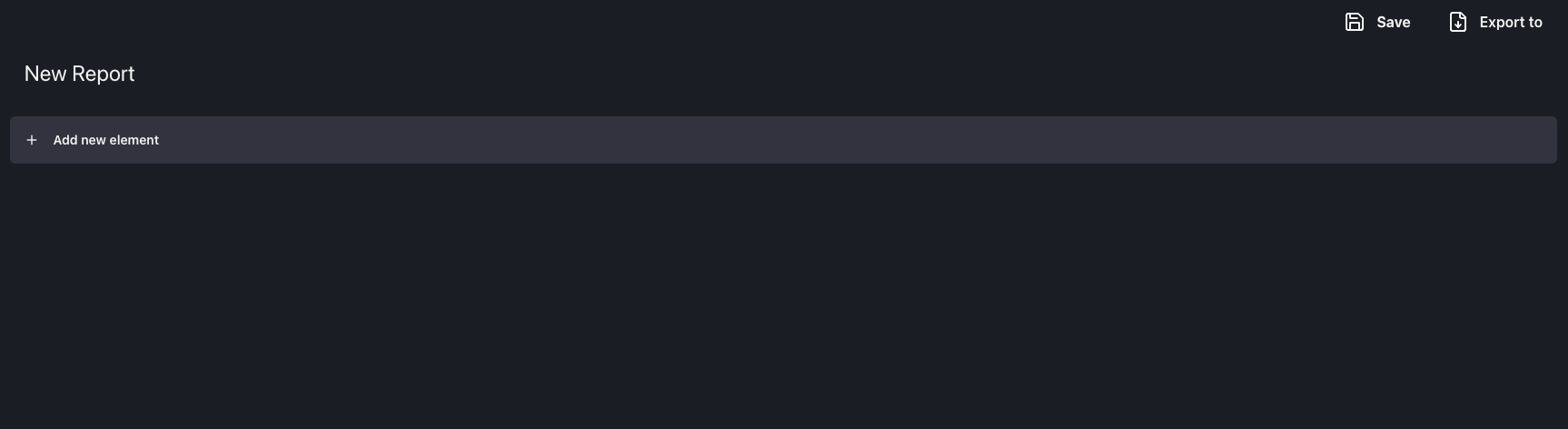 A new empty report will have just the report title, the name defined on the report creation modal, and a placeholder for new elements.