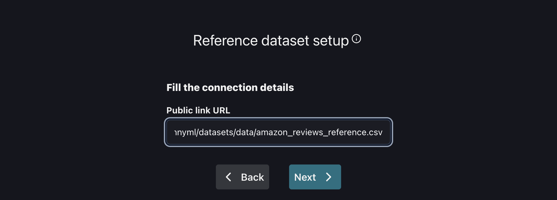 Use the following public URL to link the Reference dataset: <https://raw.githubusercontent.com/NannyML/sample_datasets/main/amazon_reviews/amazon_reviews_reference.csv>